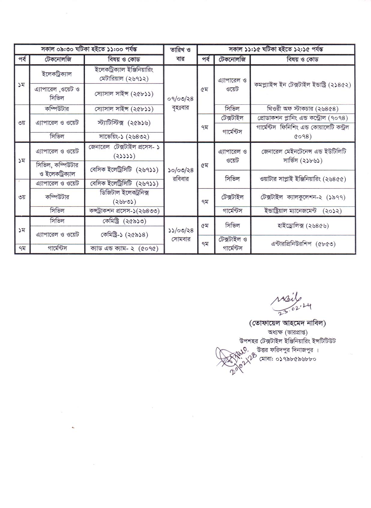 টেক্সটাইল ইঞ্জিনিয়ারিং এর ক্লাস রুটিন