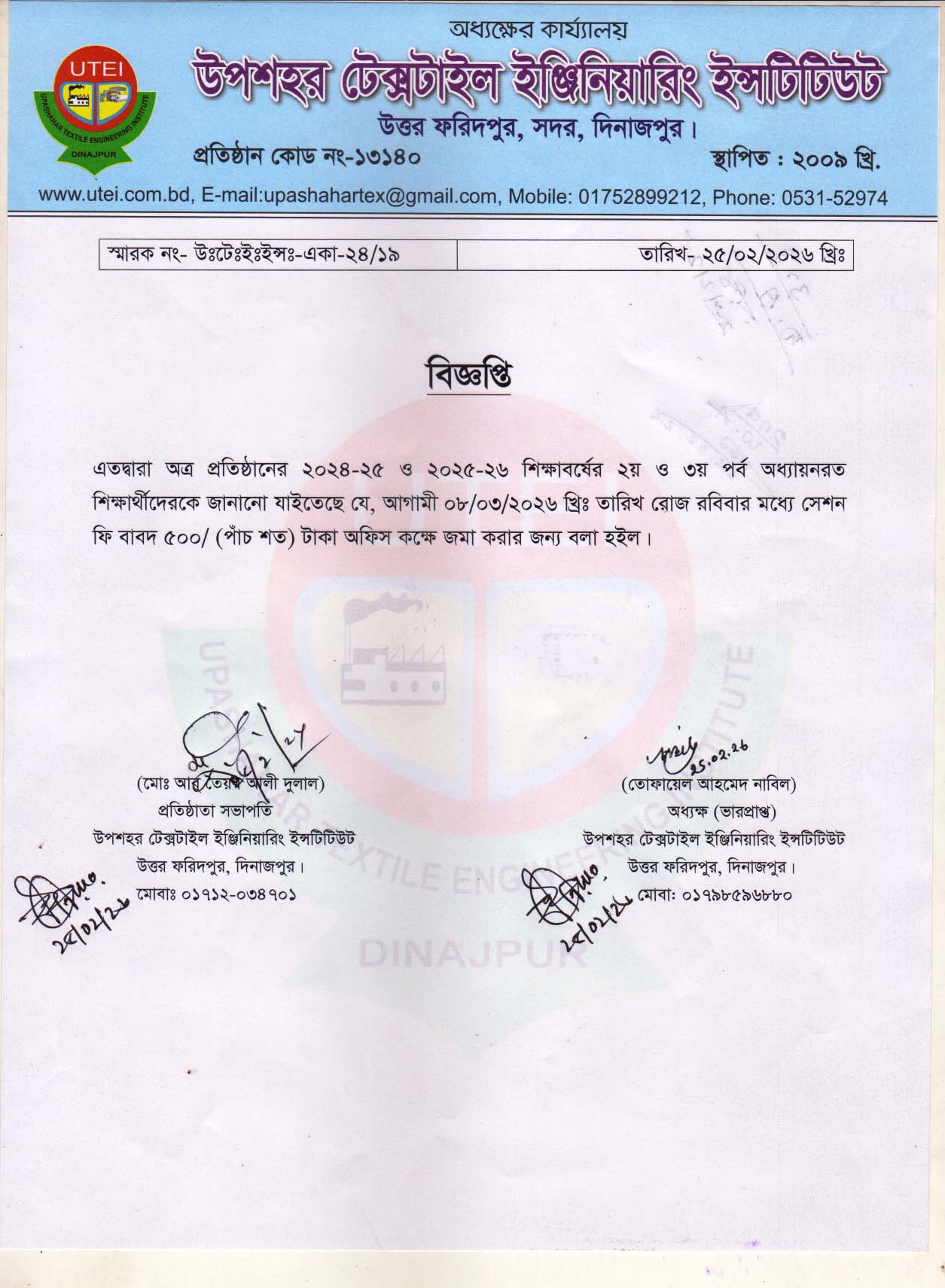 উপশহর টেক্সটাইল ইঞ্জিনিয়ারিং ইন্সটিটিউট এর অফিসিয়াল ওয়েবসাইটে আপনাকে স্বাগতম.................