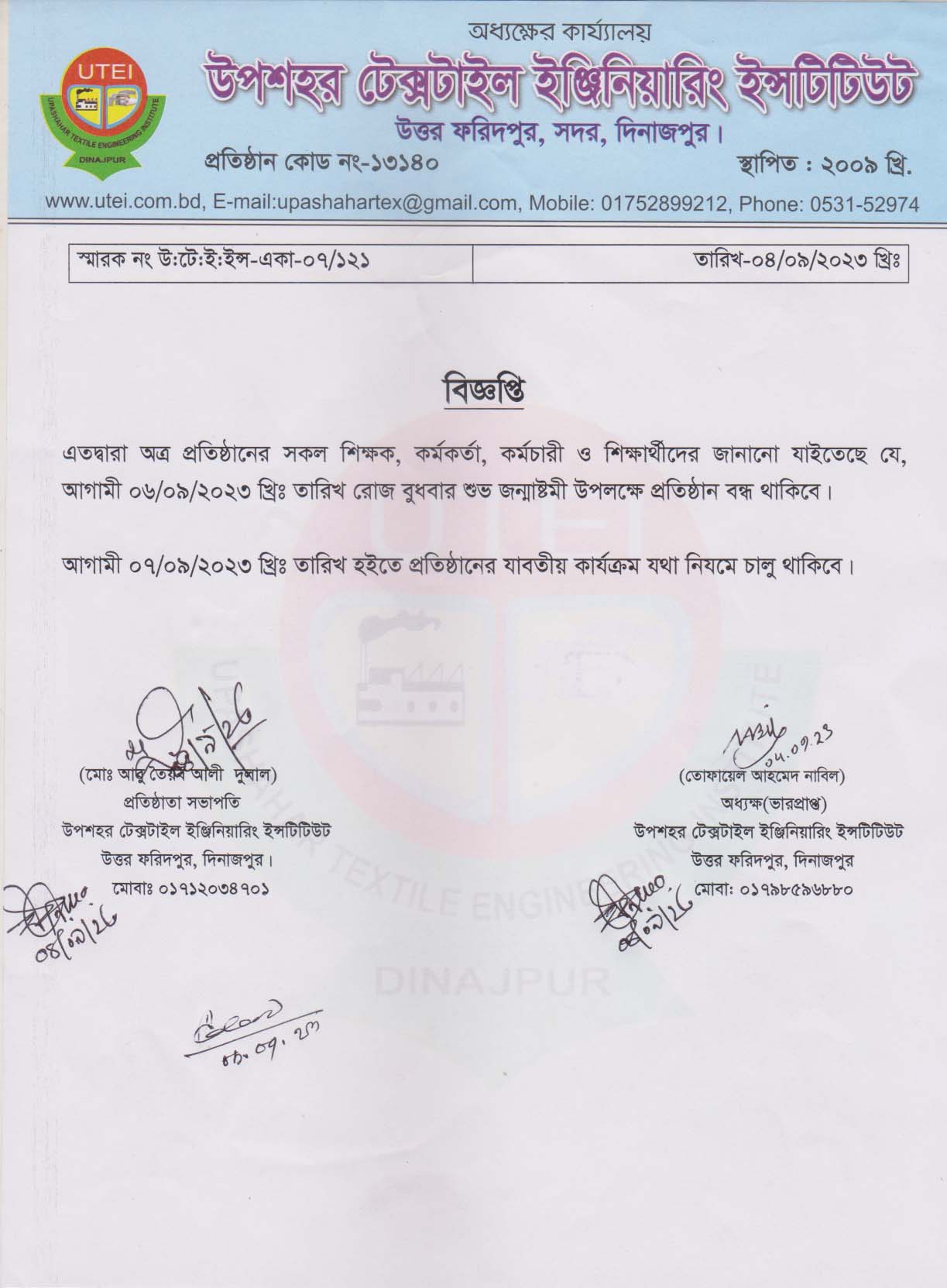 উপশহর টেক্সটাইল ইঞ্জিনিয়ারিং ইন্সটিটিউট এর অফিসিয়াল ওয়েবসাইটে আপনাকে স্বাগতম.................